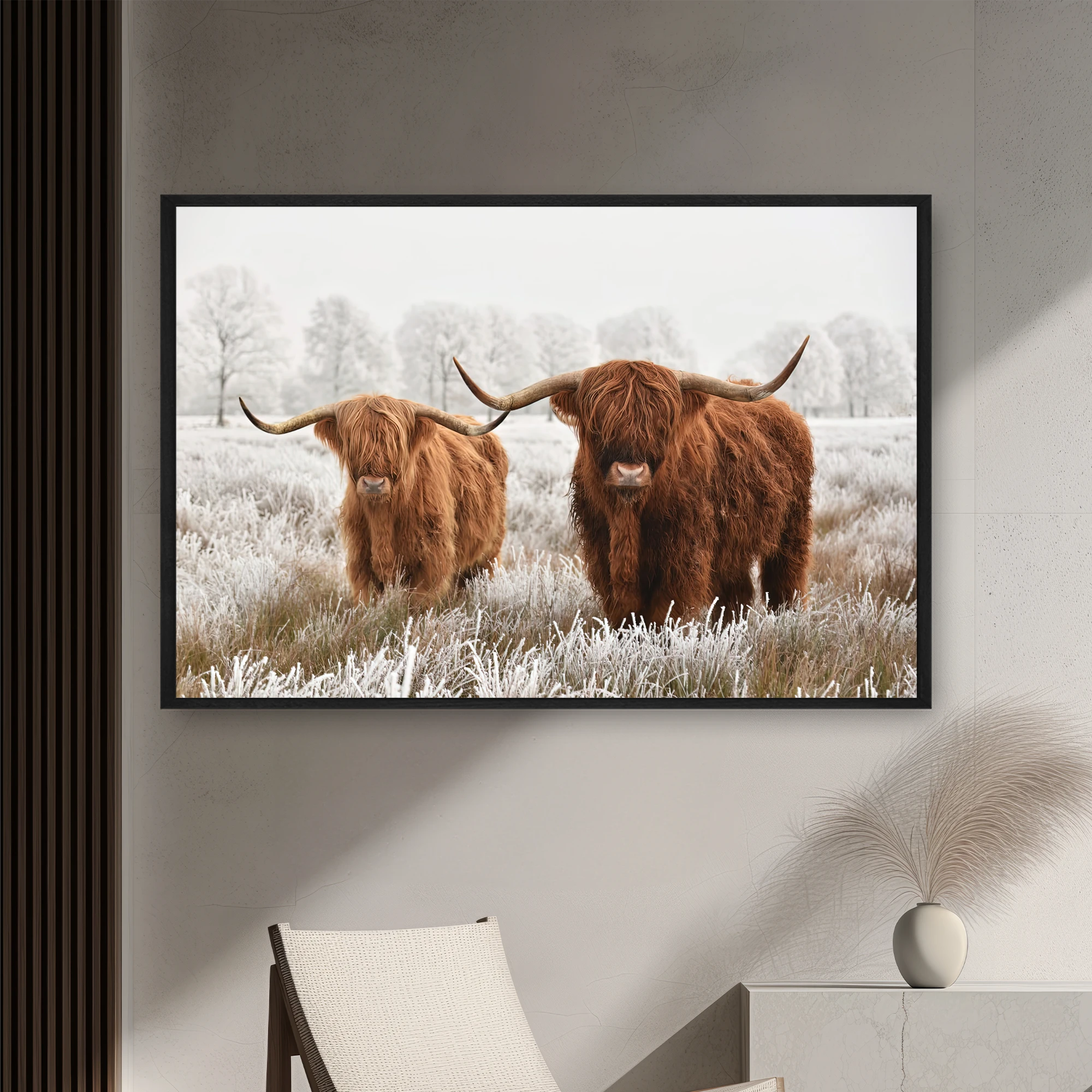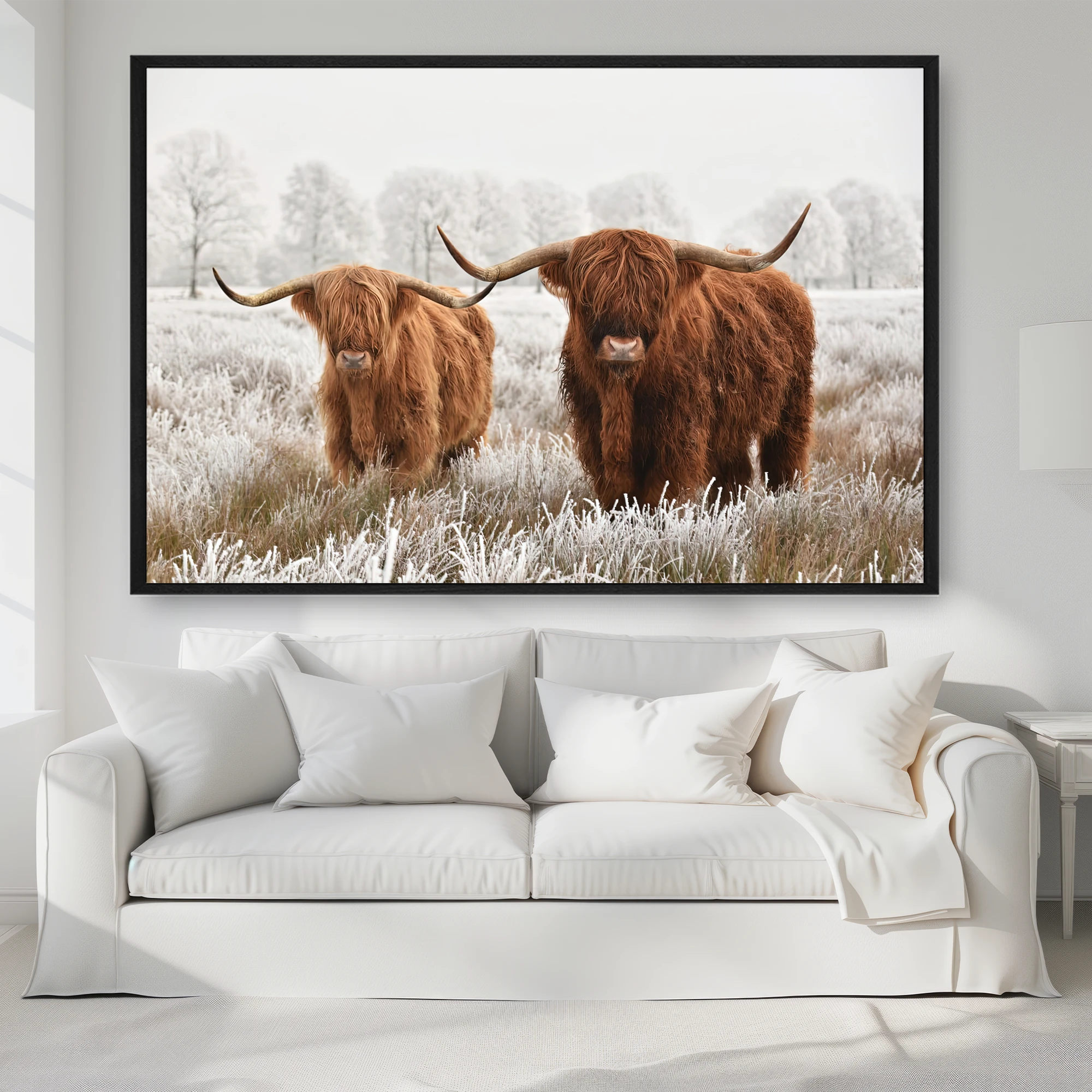 Tablolar askı aparatları önceden monte edilmiş şekilde gelir. Kutusundan çıkarıp doğrudan asabilirsiniz.