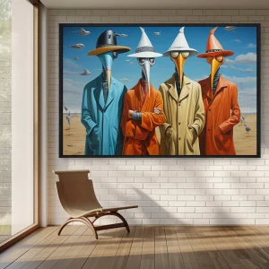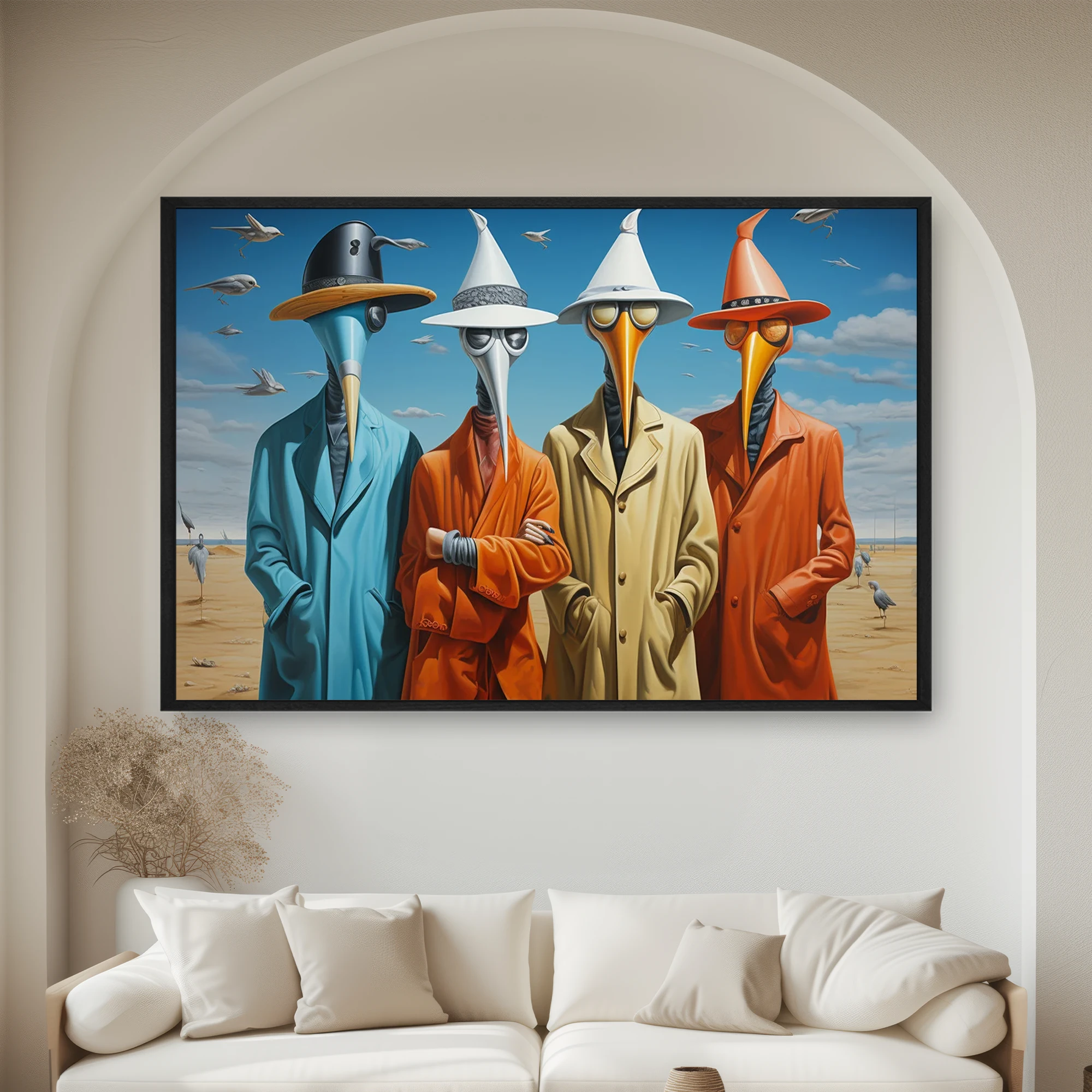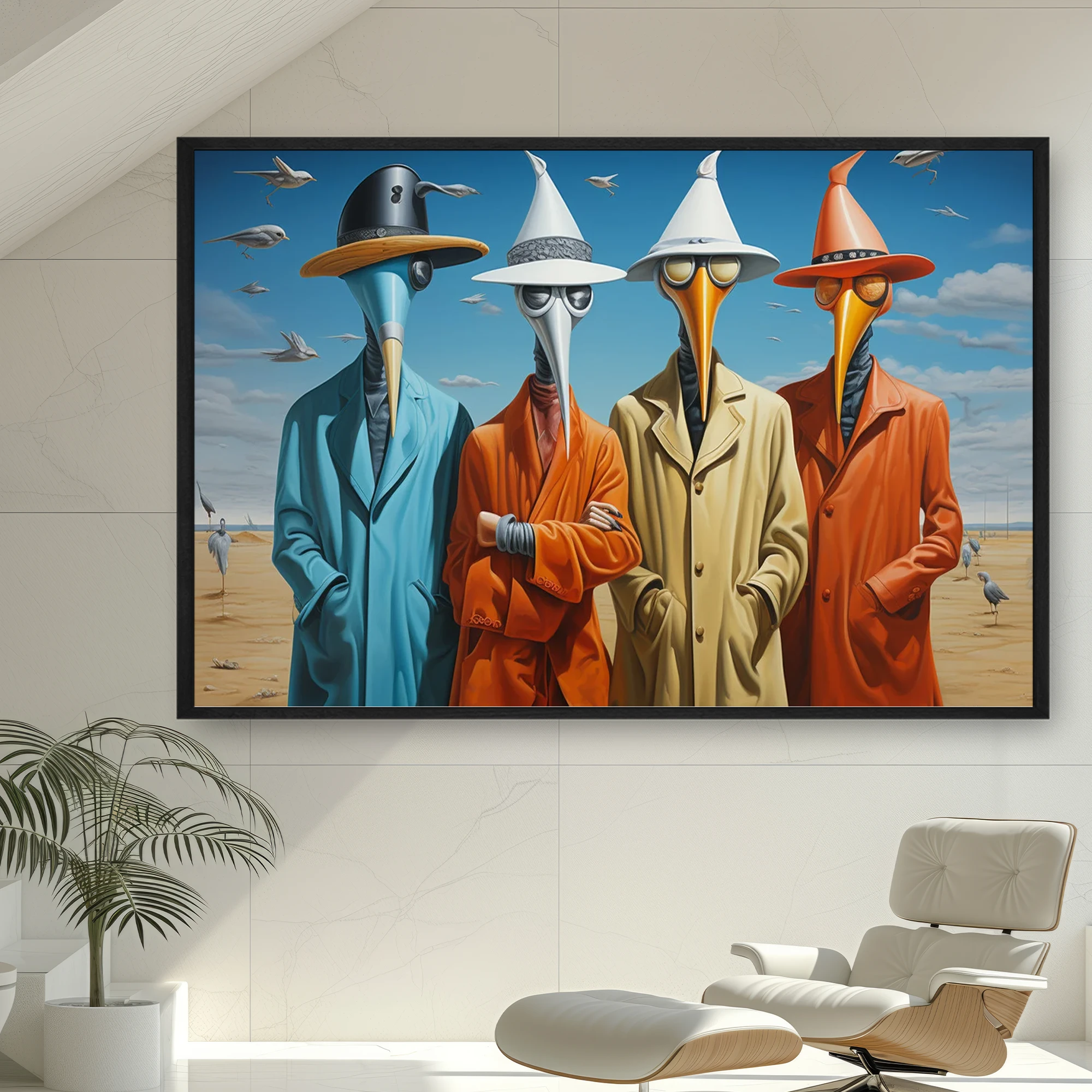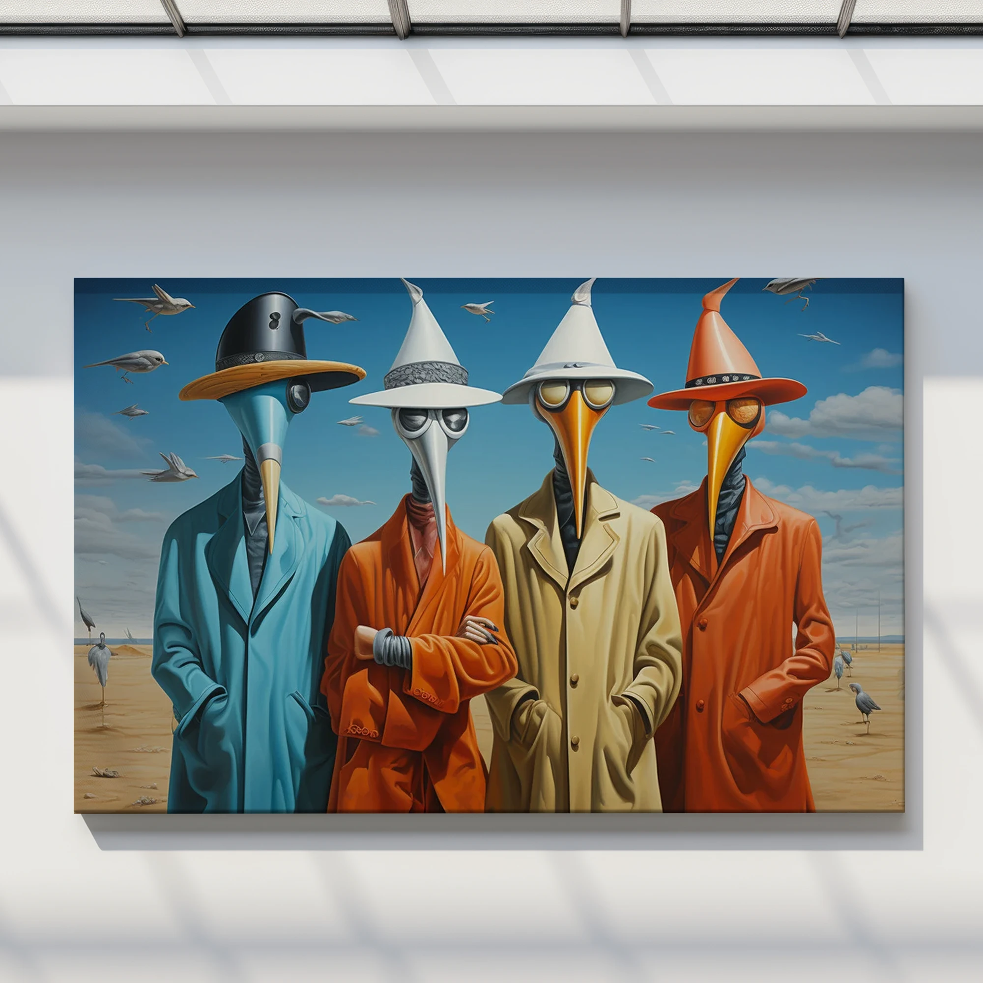 Bir Çölde Duran Şapka Ve Palto Giyen Üç Kuş