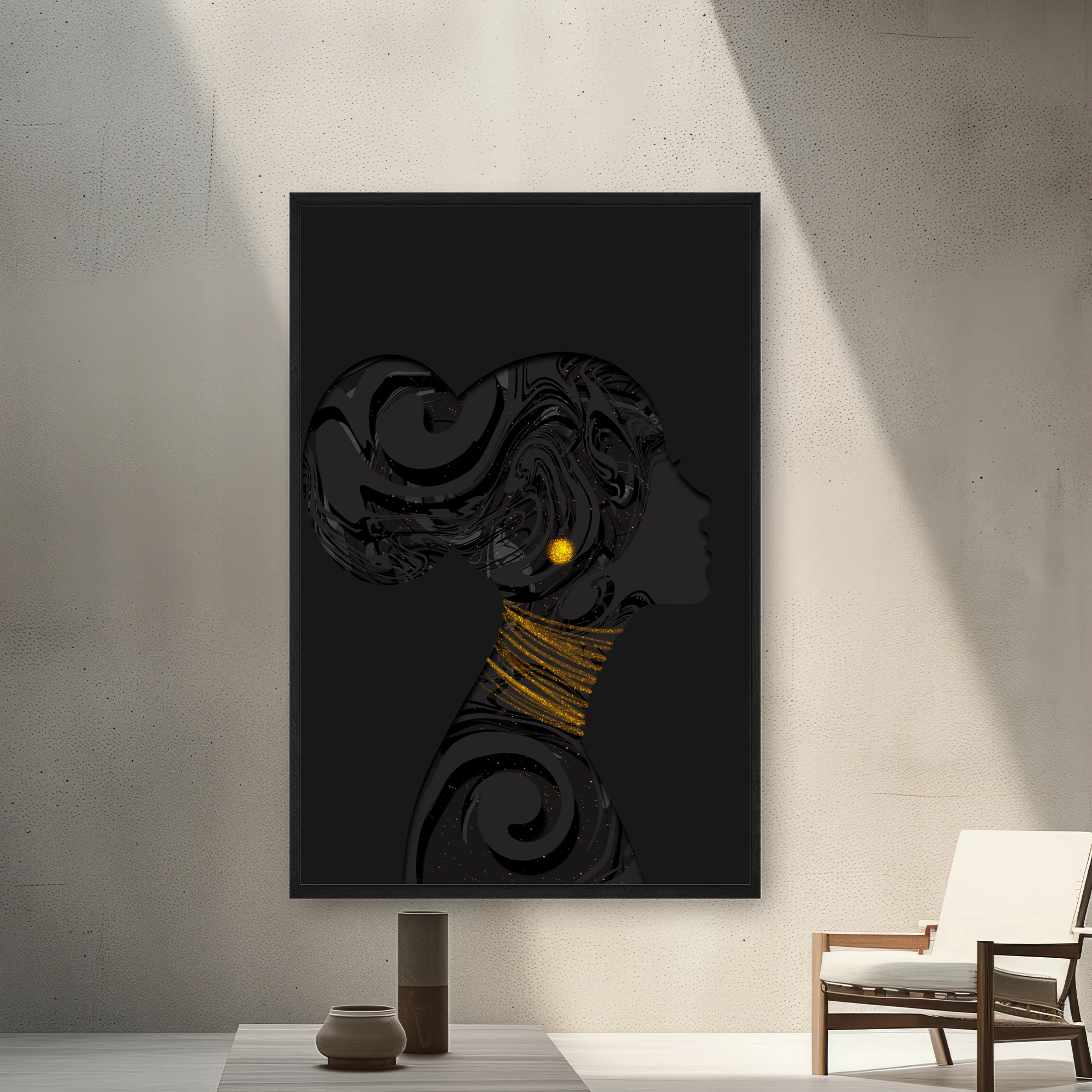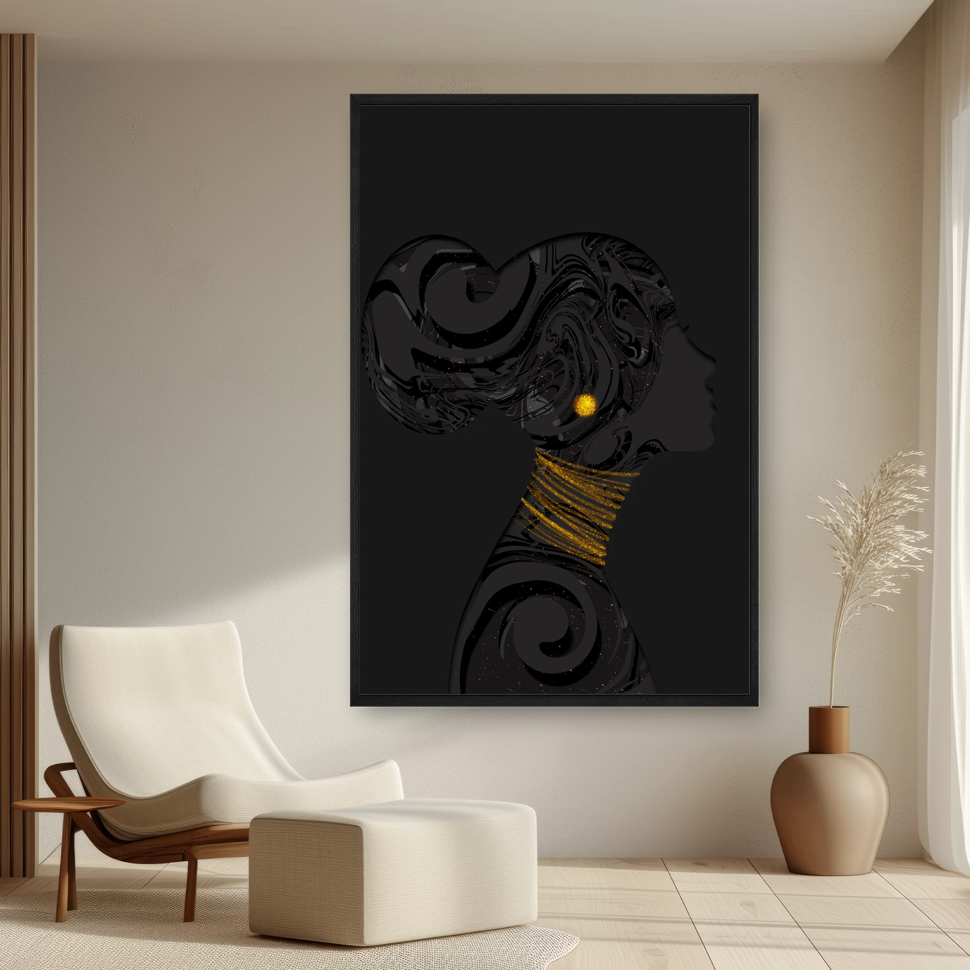 Bir Kadının Profilinin Boynunda Altın Boncuklu İllüstrasyon