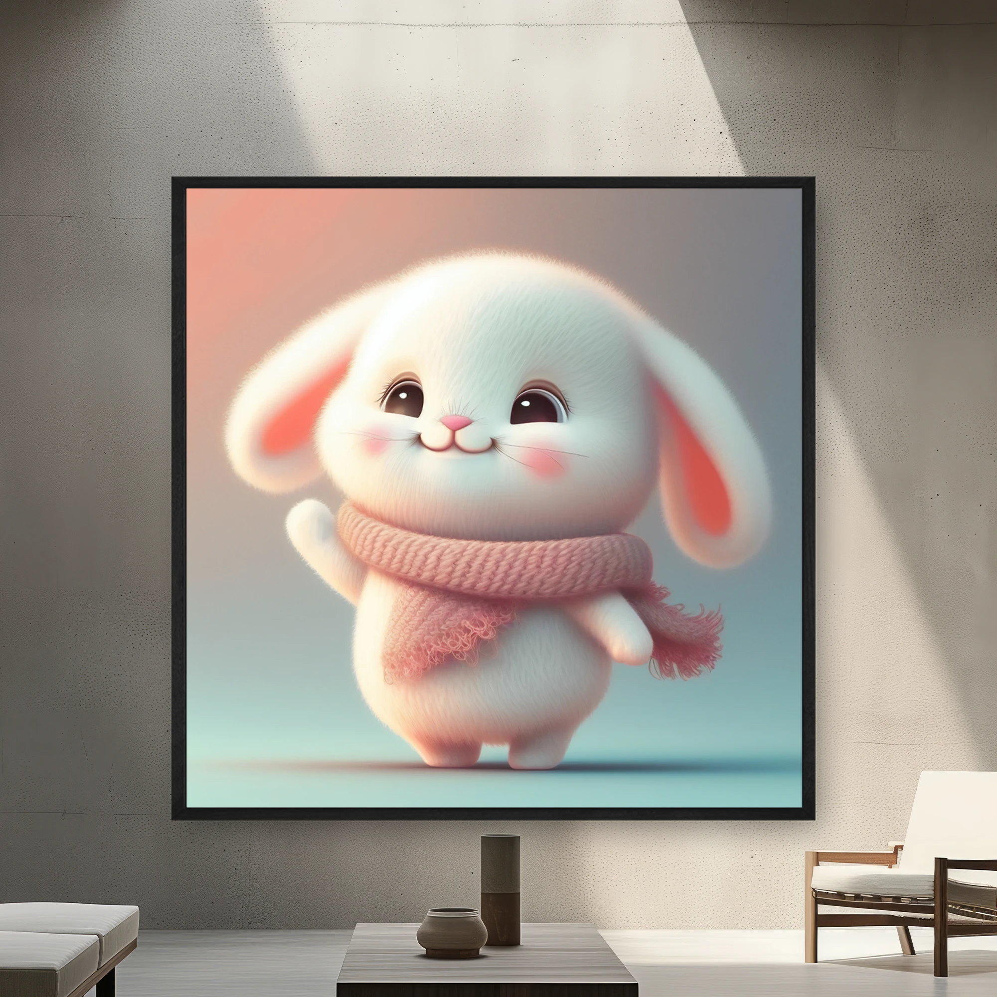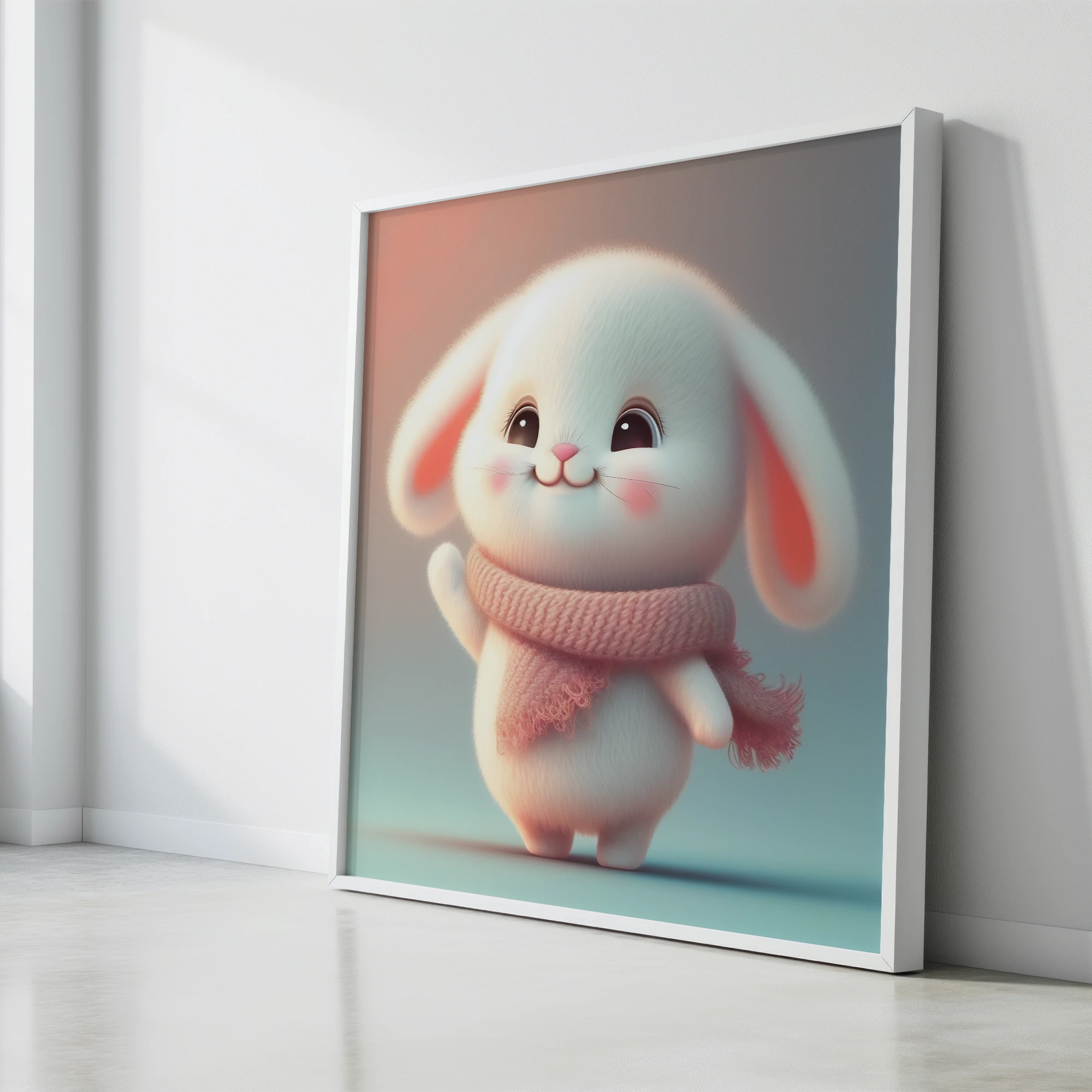 Boynunun Etrafında Pembe Bir Eşarp Ve Bir Eşarp Giyen Beyaz Bir Tavşan