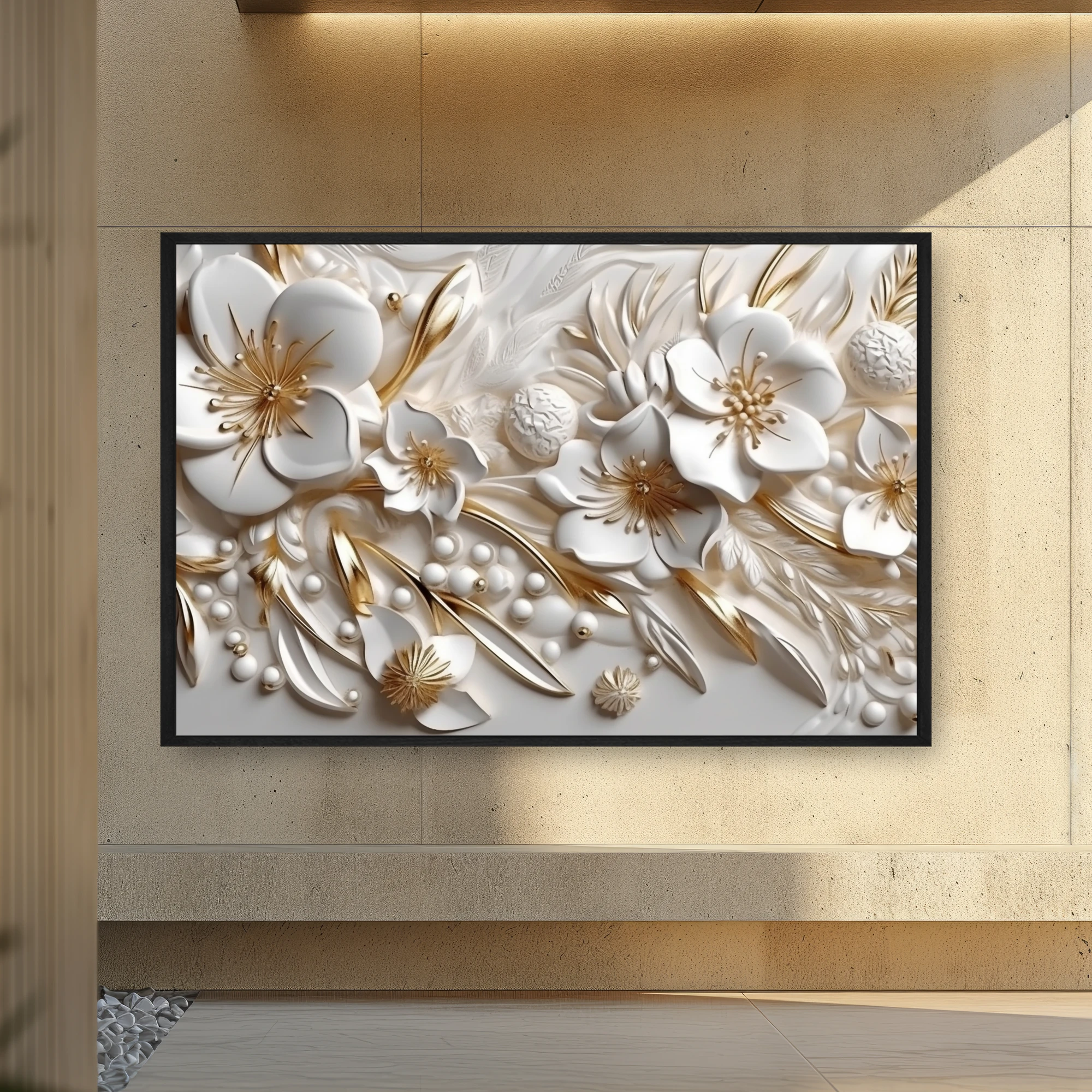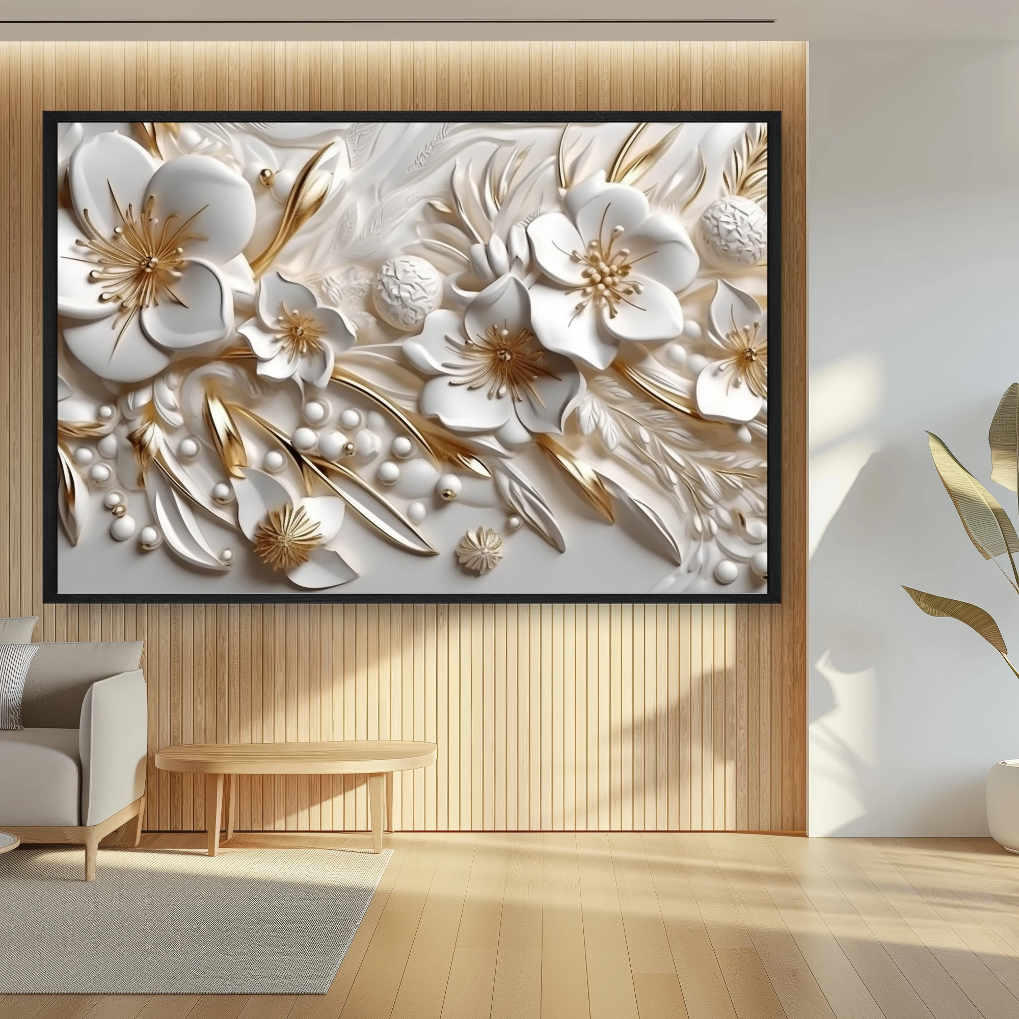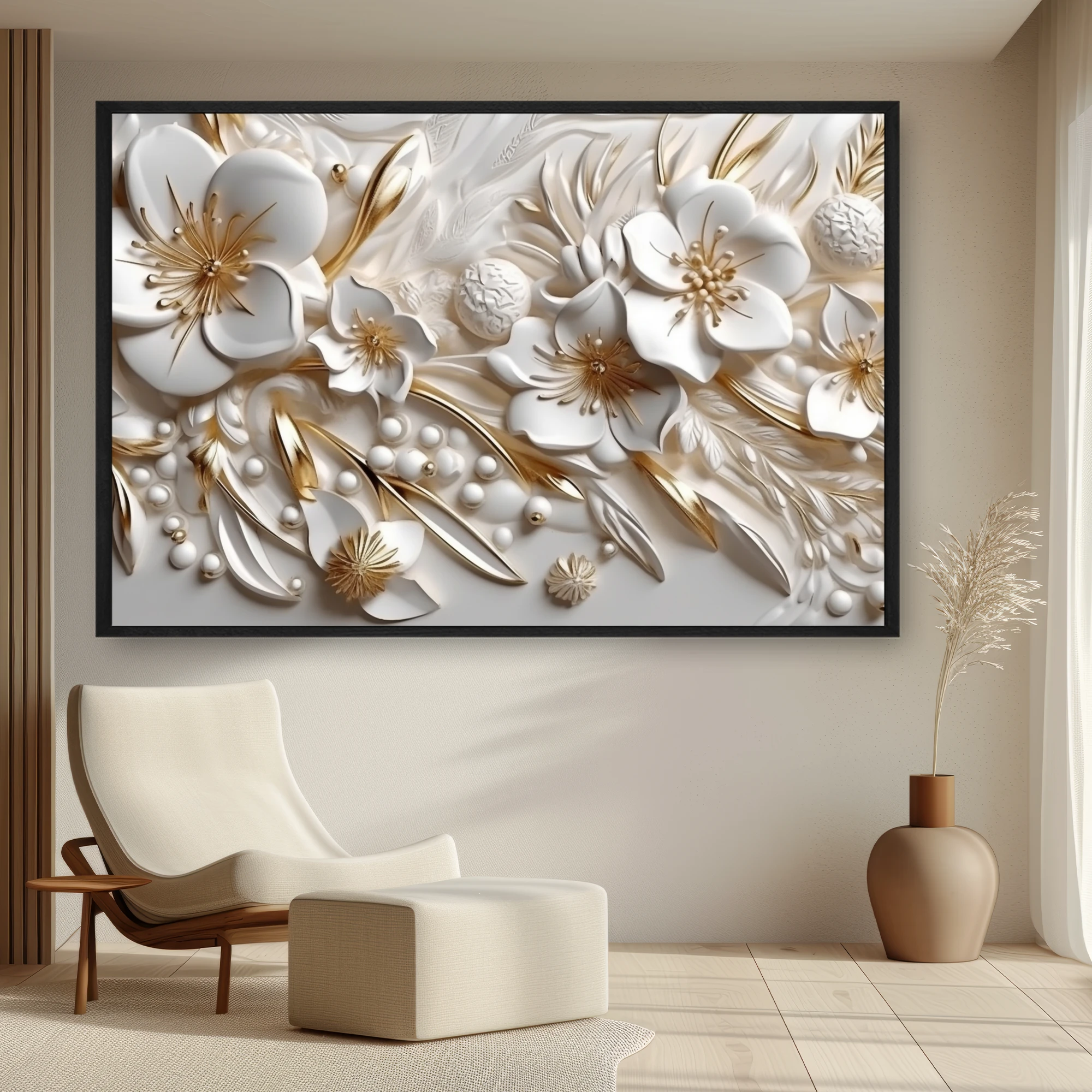 Çiçekli Beyaz Ve Altın Duvarın Yakın Bir Kısmı