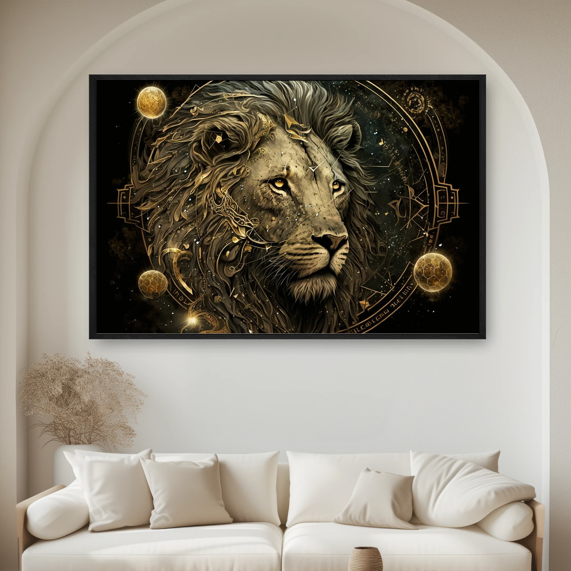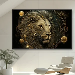 Dairesel Bir Çerçevede Altın Gözlü Bir Aslanın Zodyak İşareti