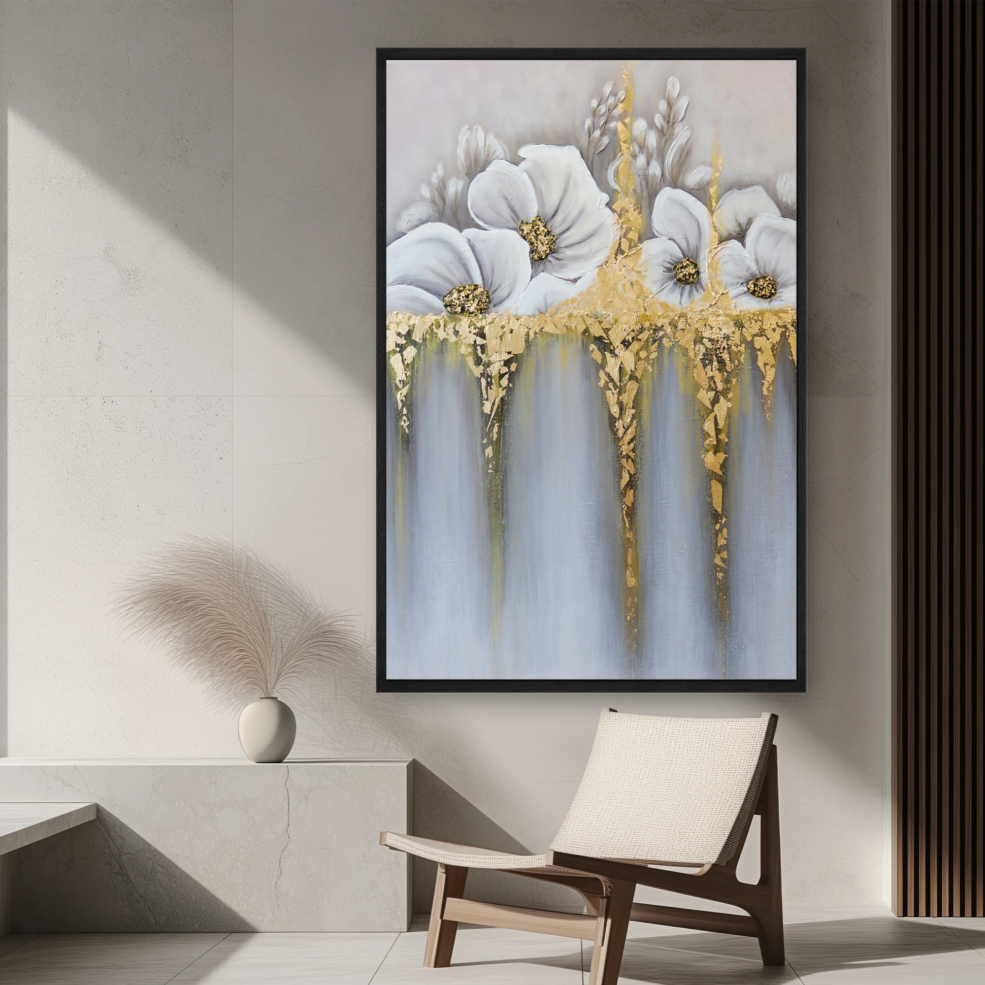 Gri Ve Altın Arka Plan Üzerinde Beyaz Çiçekler