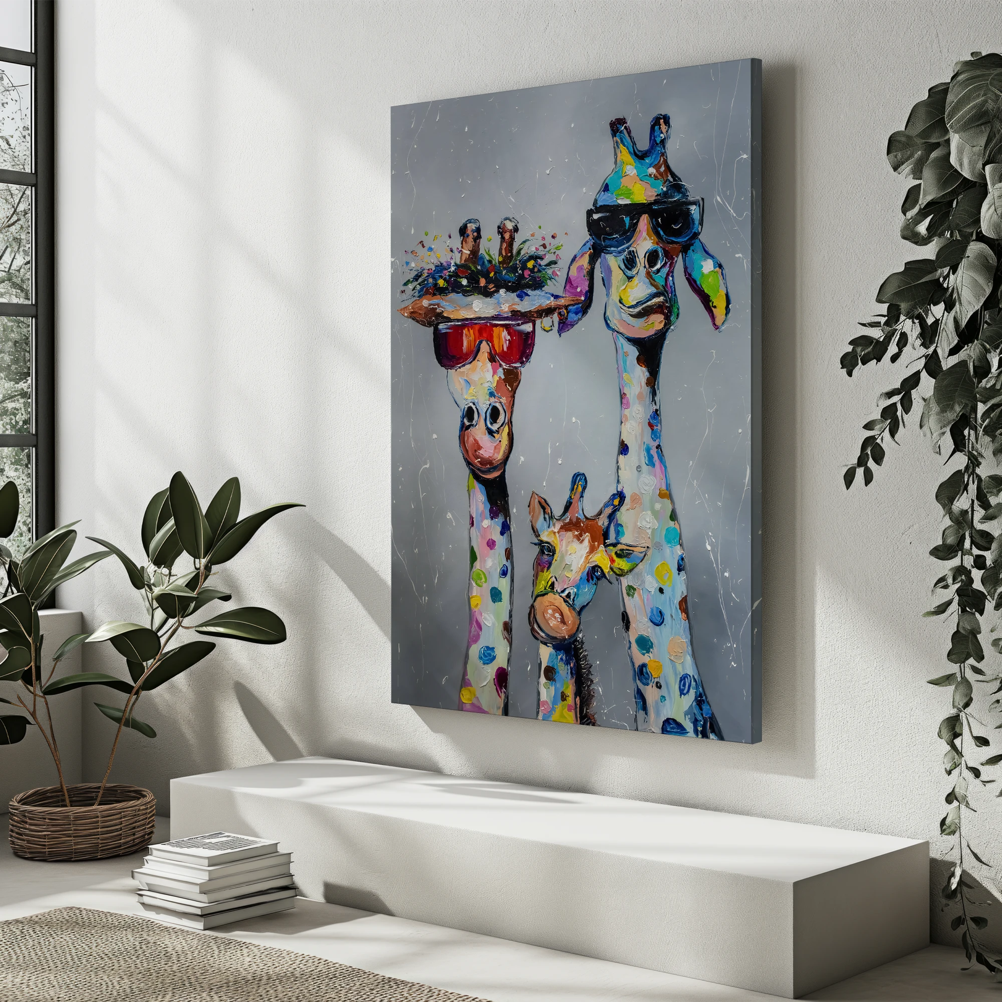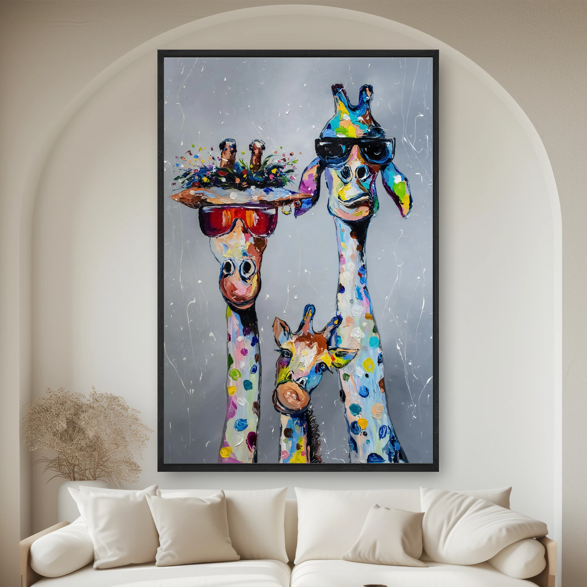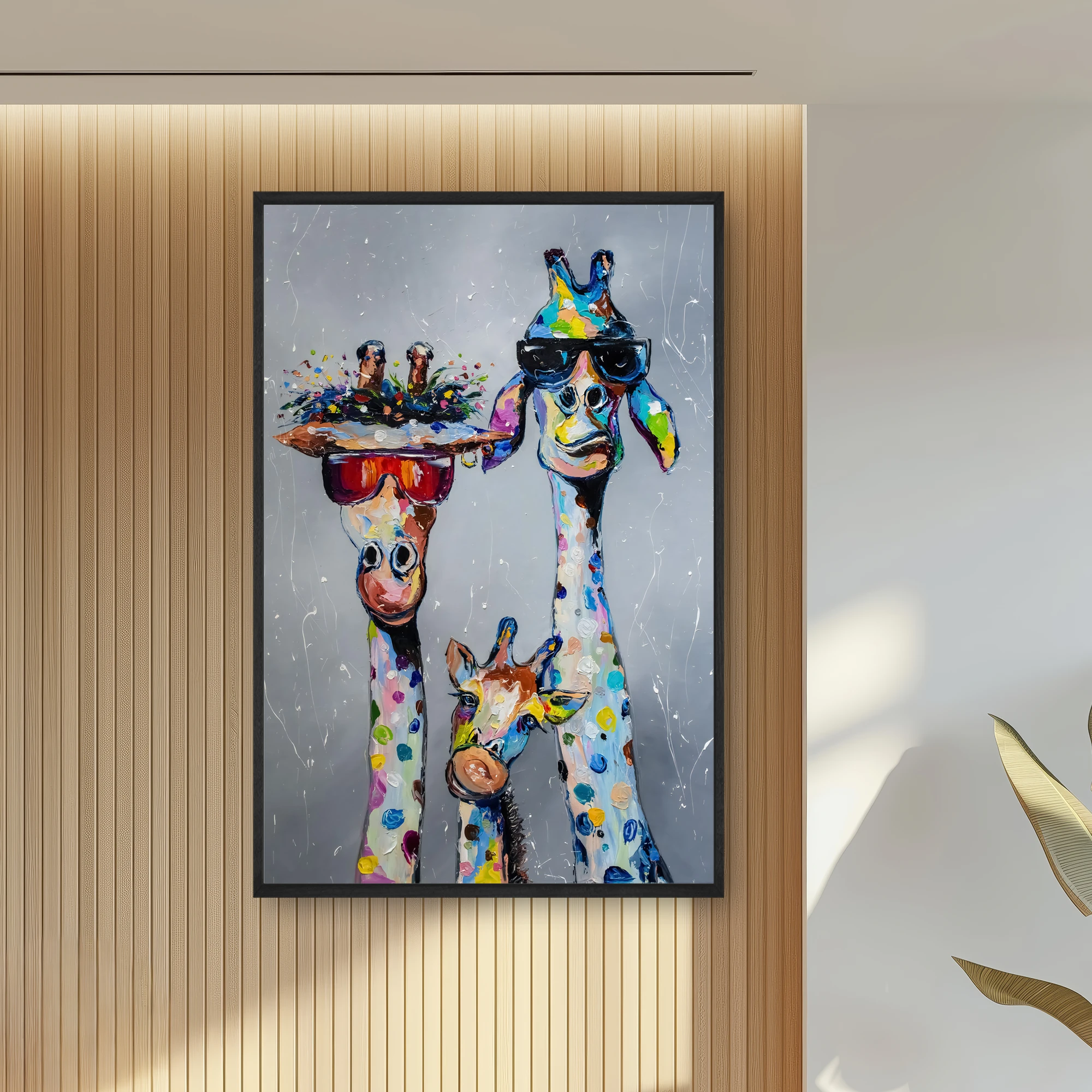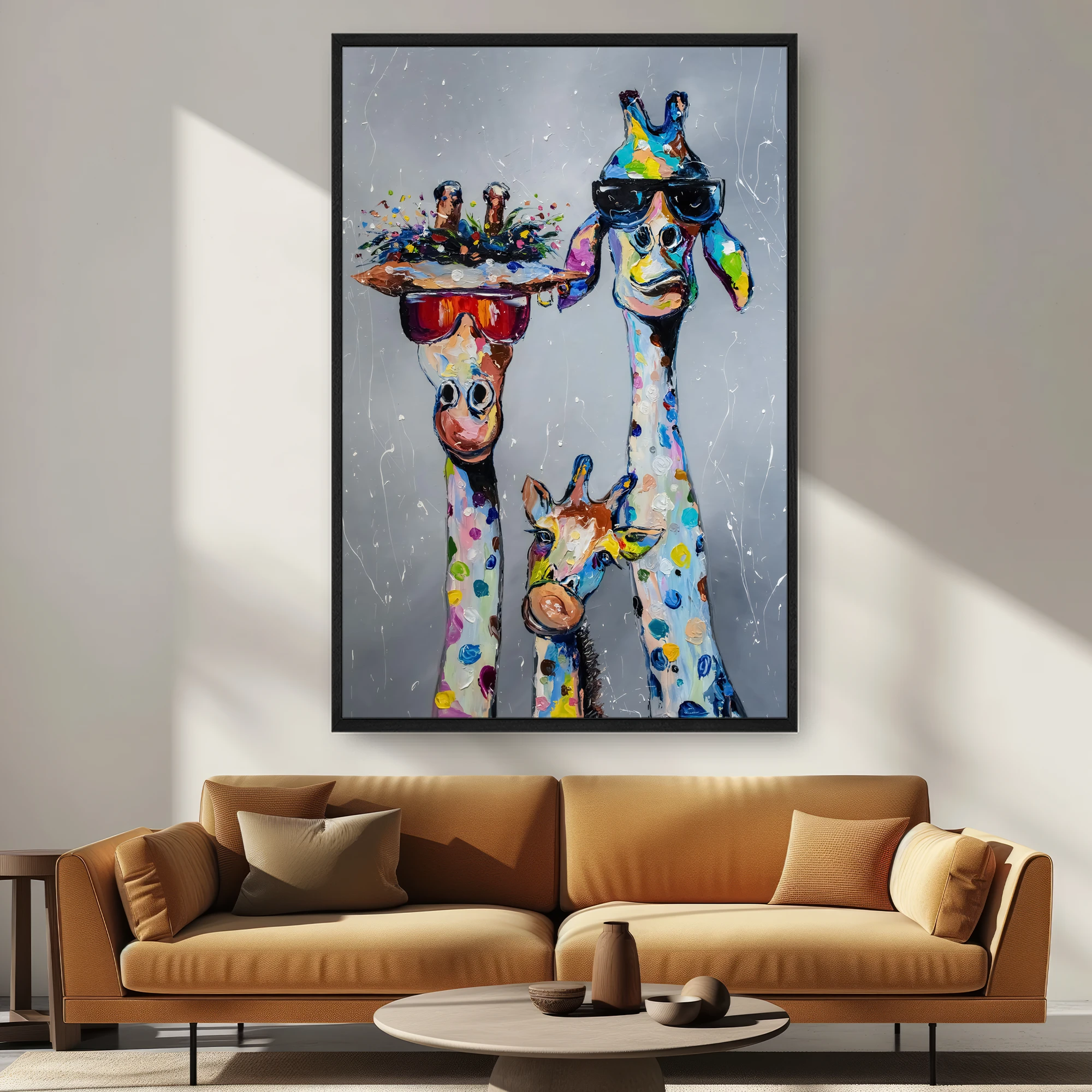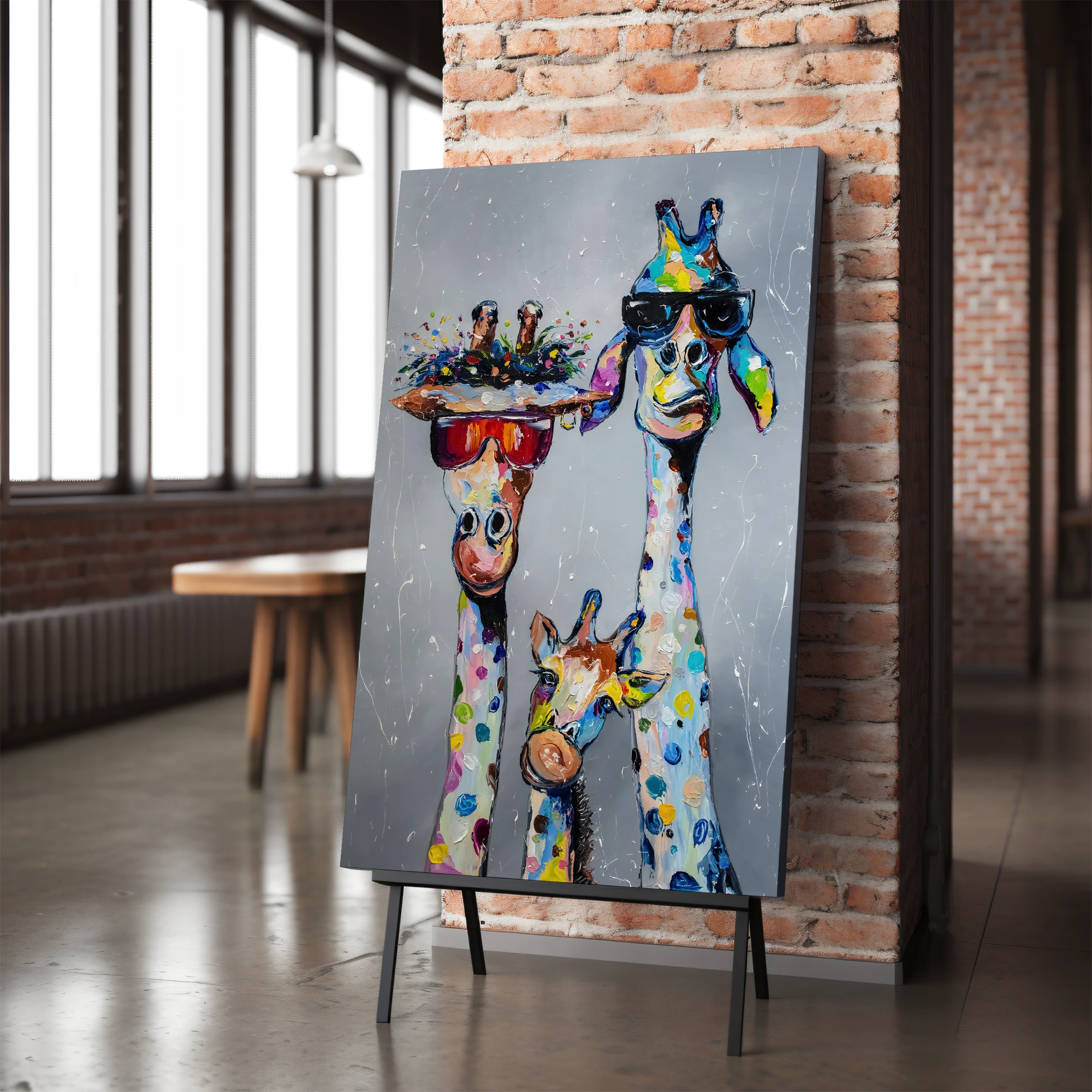 Kafalarında Şapka Ve Güneş Gözlüğü İle İki Zürafa Boyası