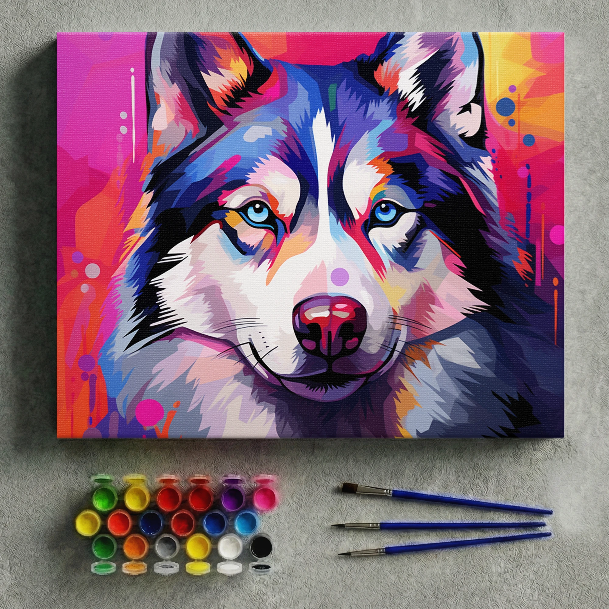 Renkli Bir Arka Plan Üzerinde Husky Köpek