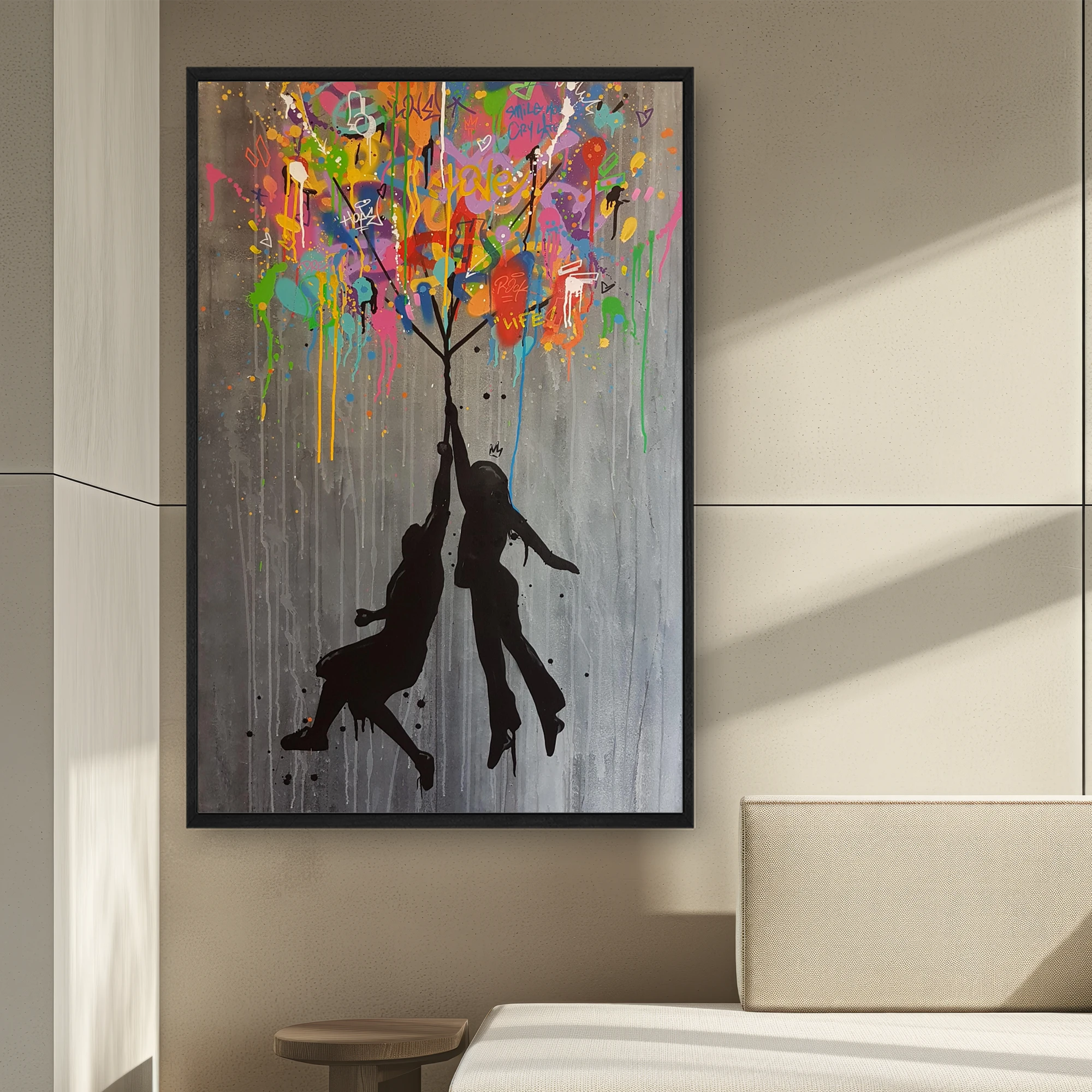 Tablolar askı aparatları önceden monte edilmiş şekilde gelir. Kutusundan çıkarıp doğrudan asabilirsiniz.