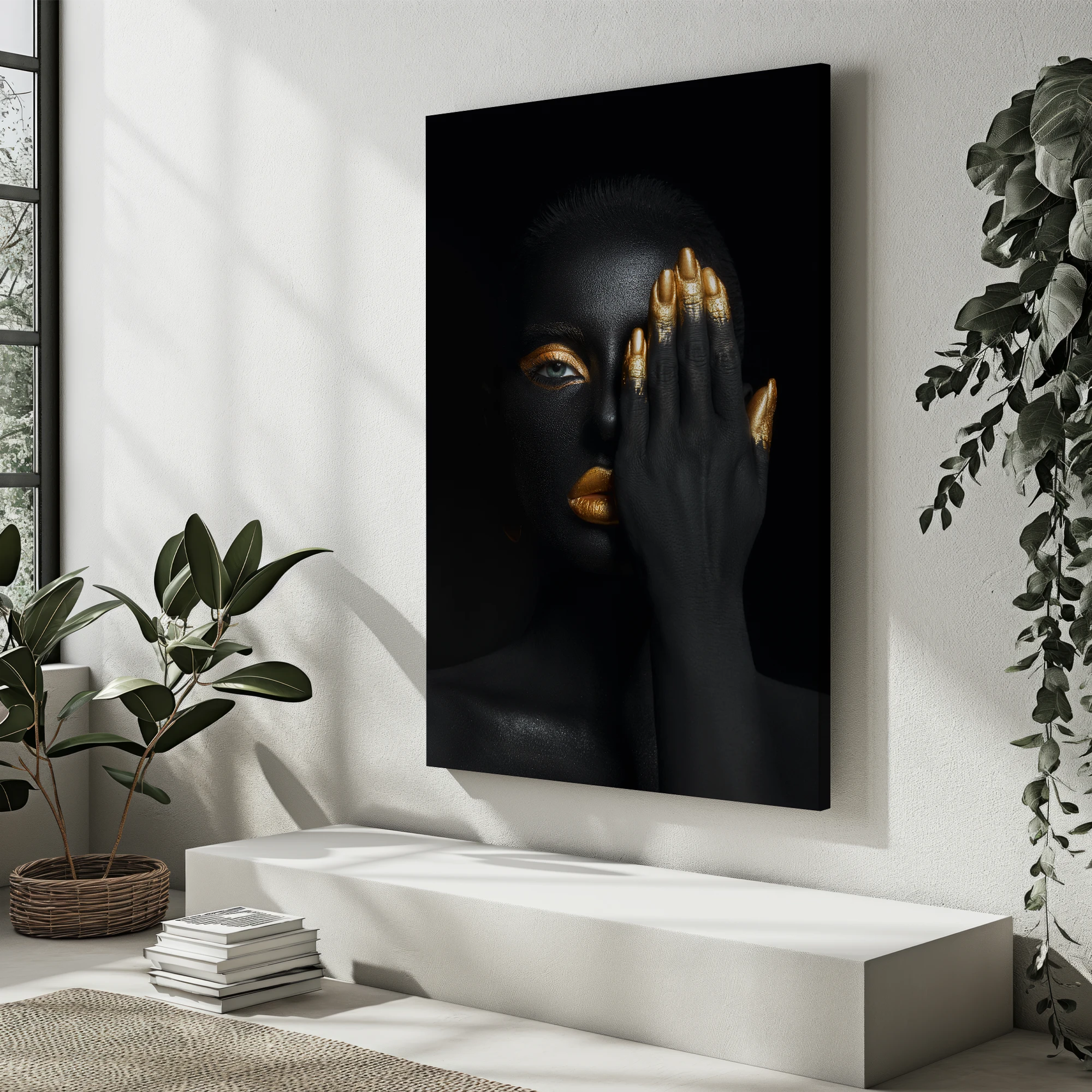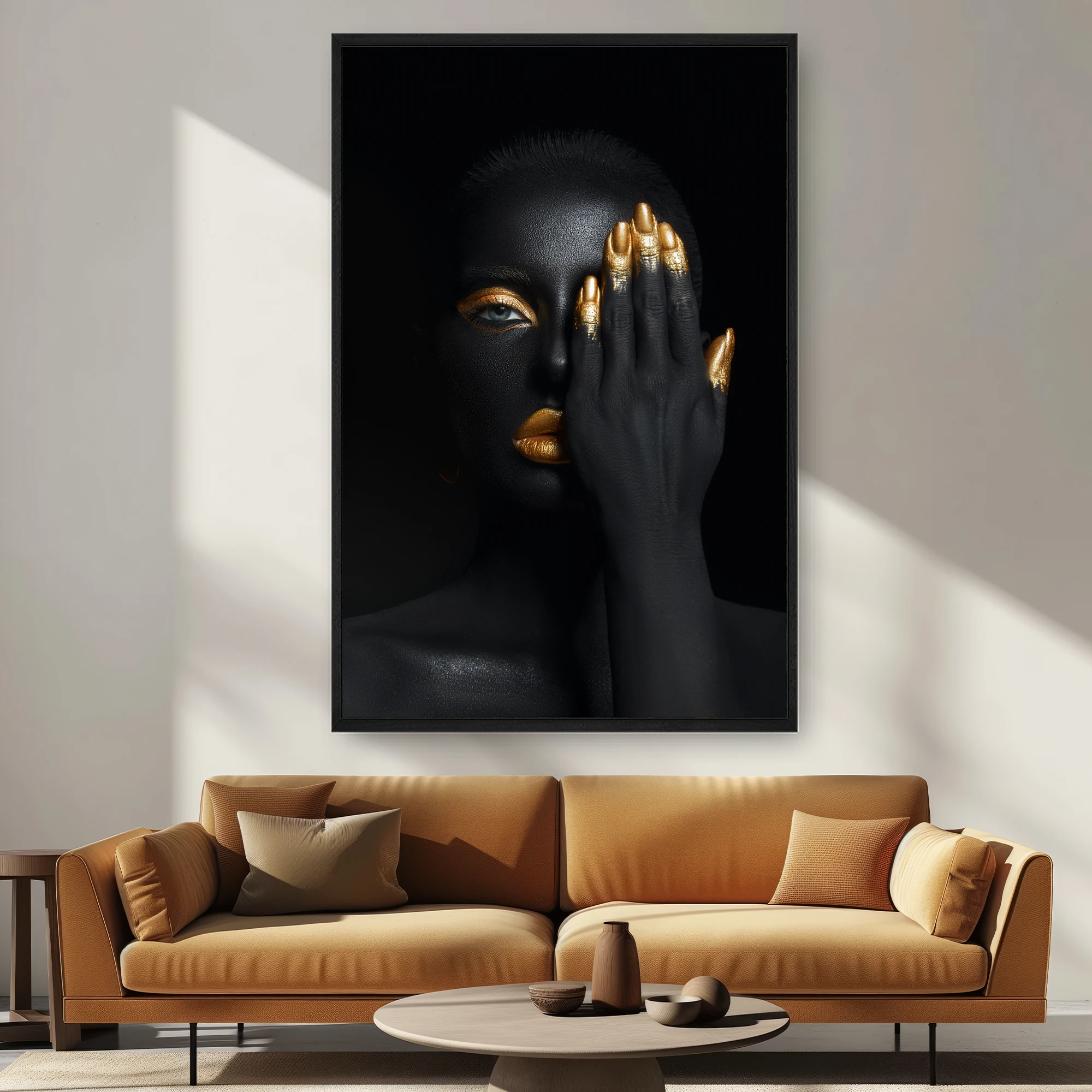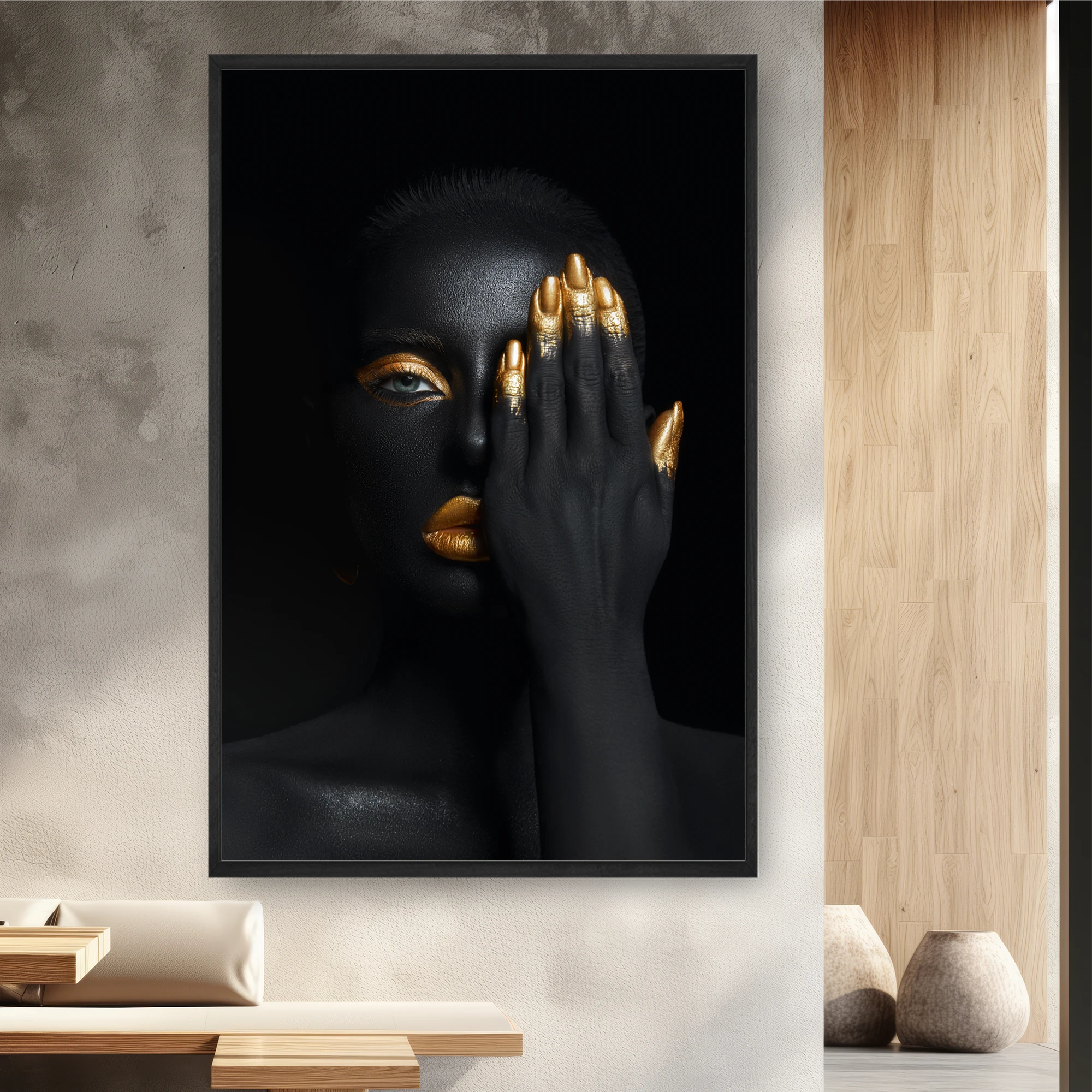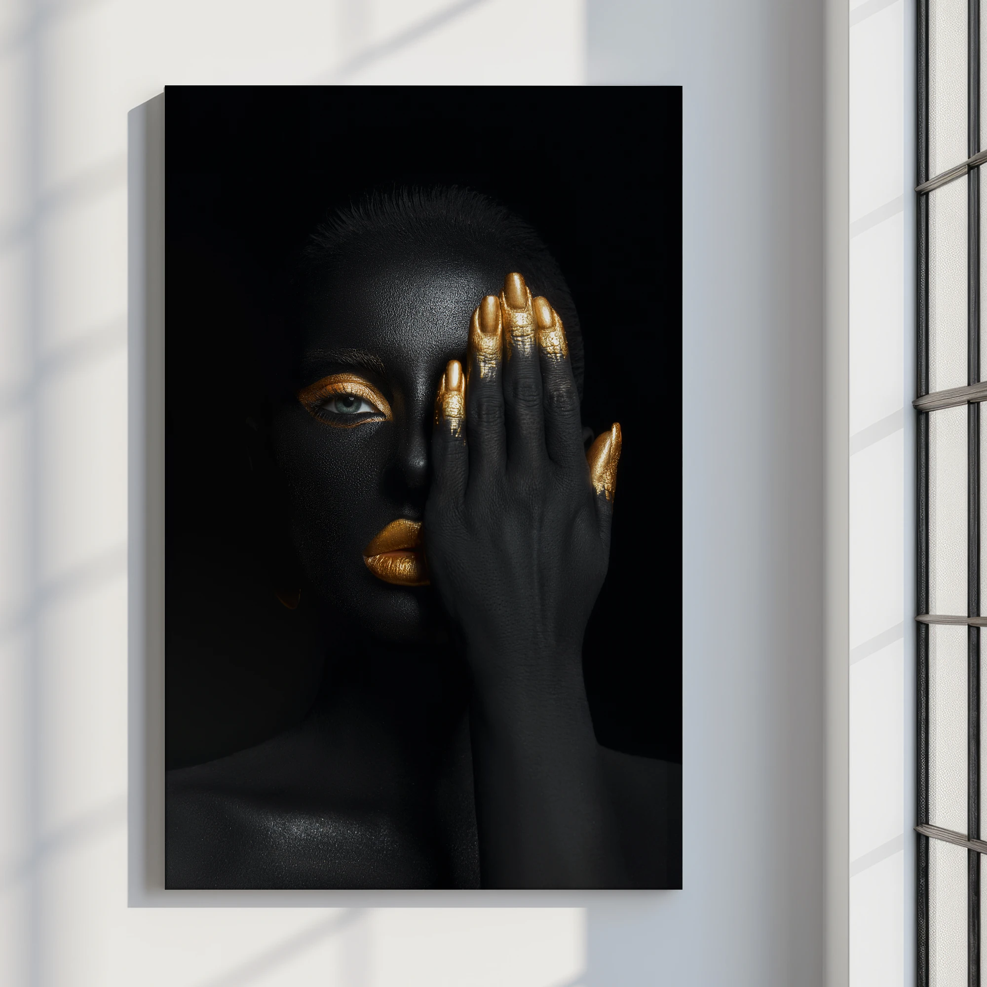 Siyah Ve Altın Olan Bir Kadın Portresi – Elini Yüzüne Tutarak