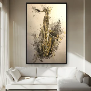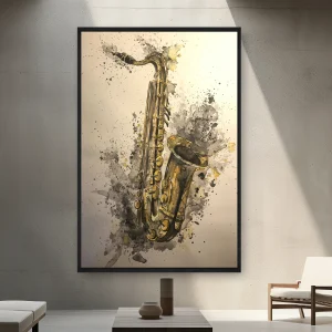 Üzerinde Boya Sıçraması Olan Bir Saksafon Çizimi