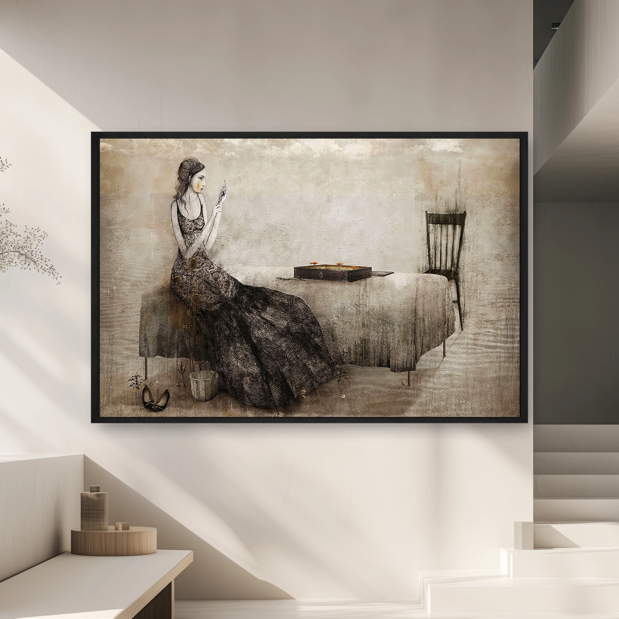 Tablolar askı aparatları önceden monte edilmiş şekilde gelir. Kutusundan çıkarıp doğrudan asabilirsiniz.