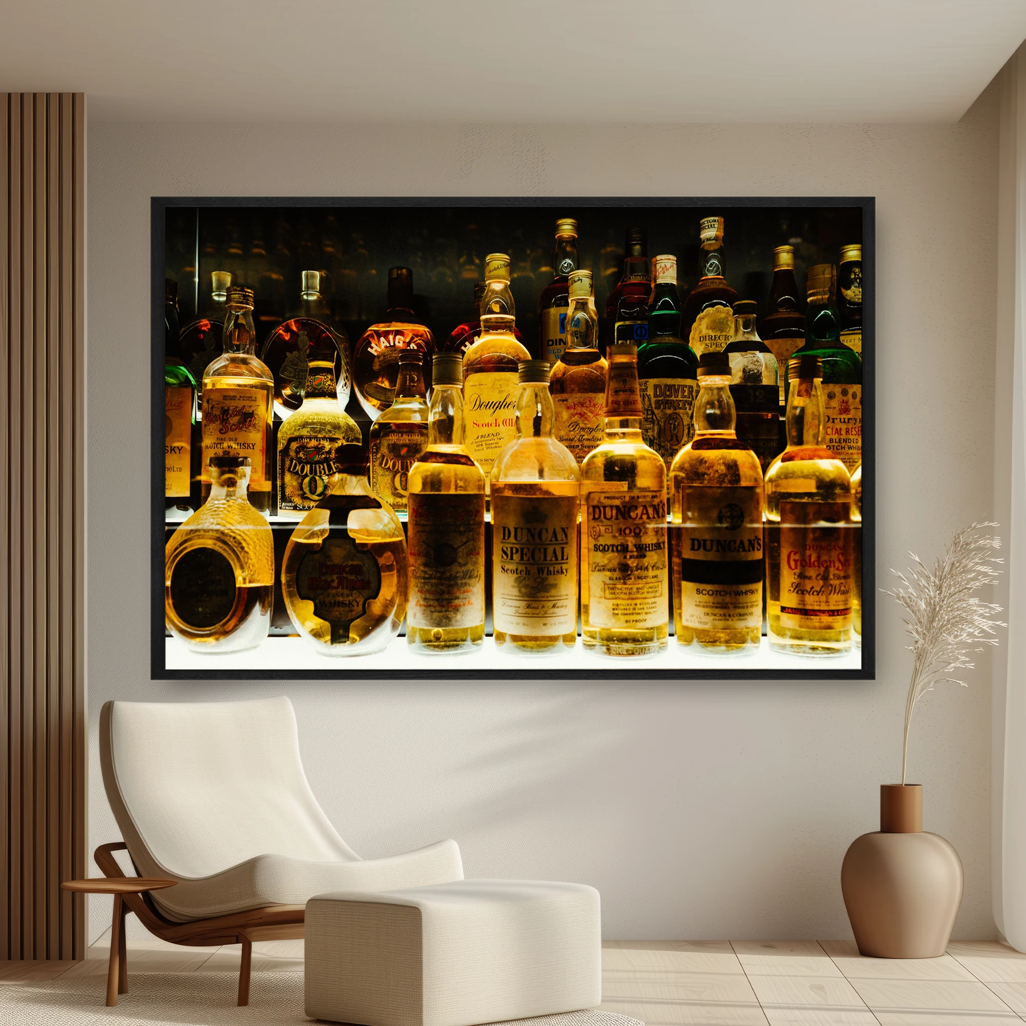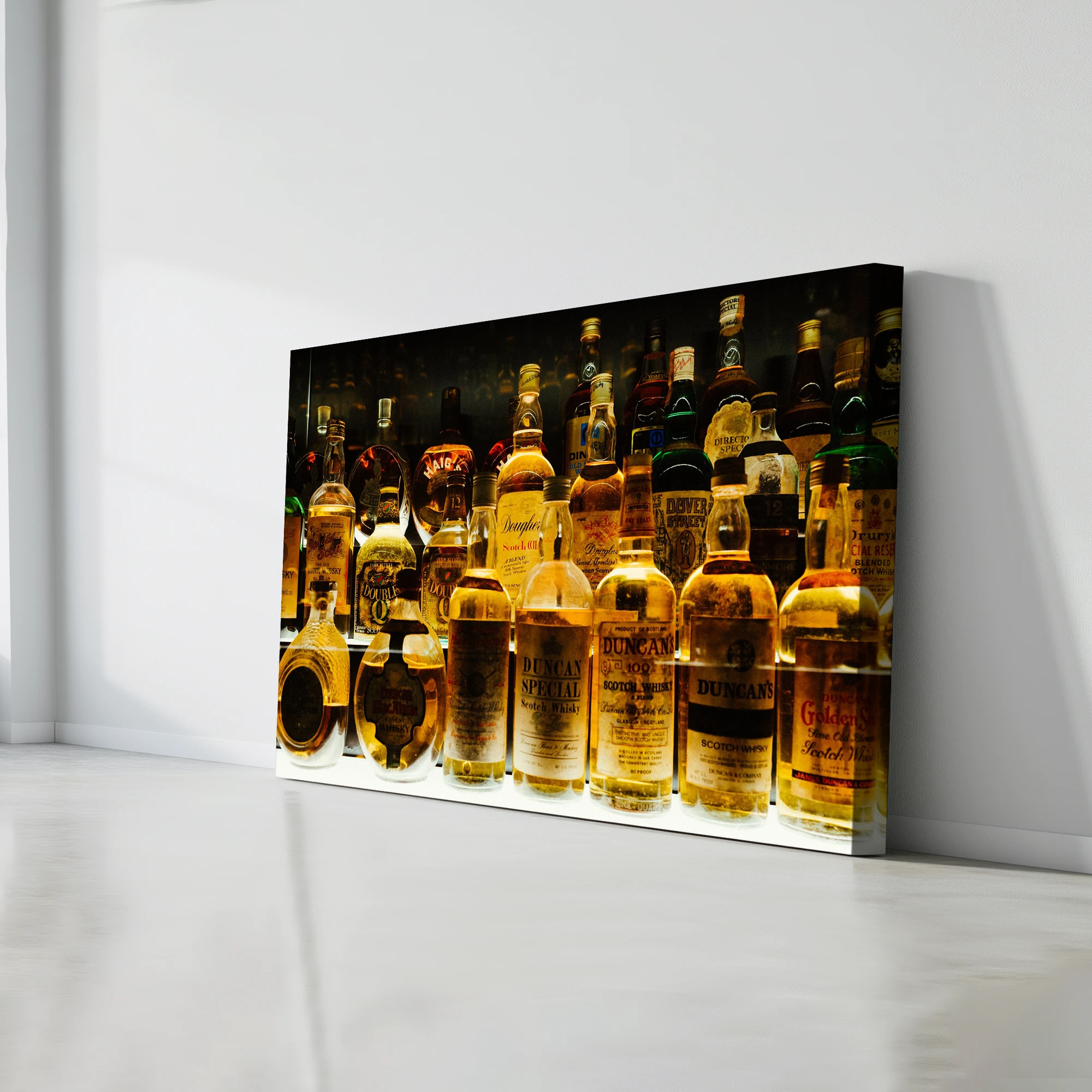 Yan Yana Bir Rafta Oturan Birçok Şişe Alkol